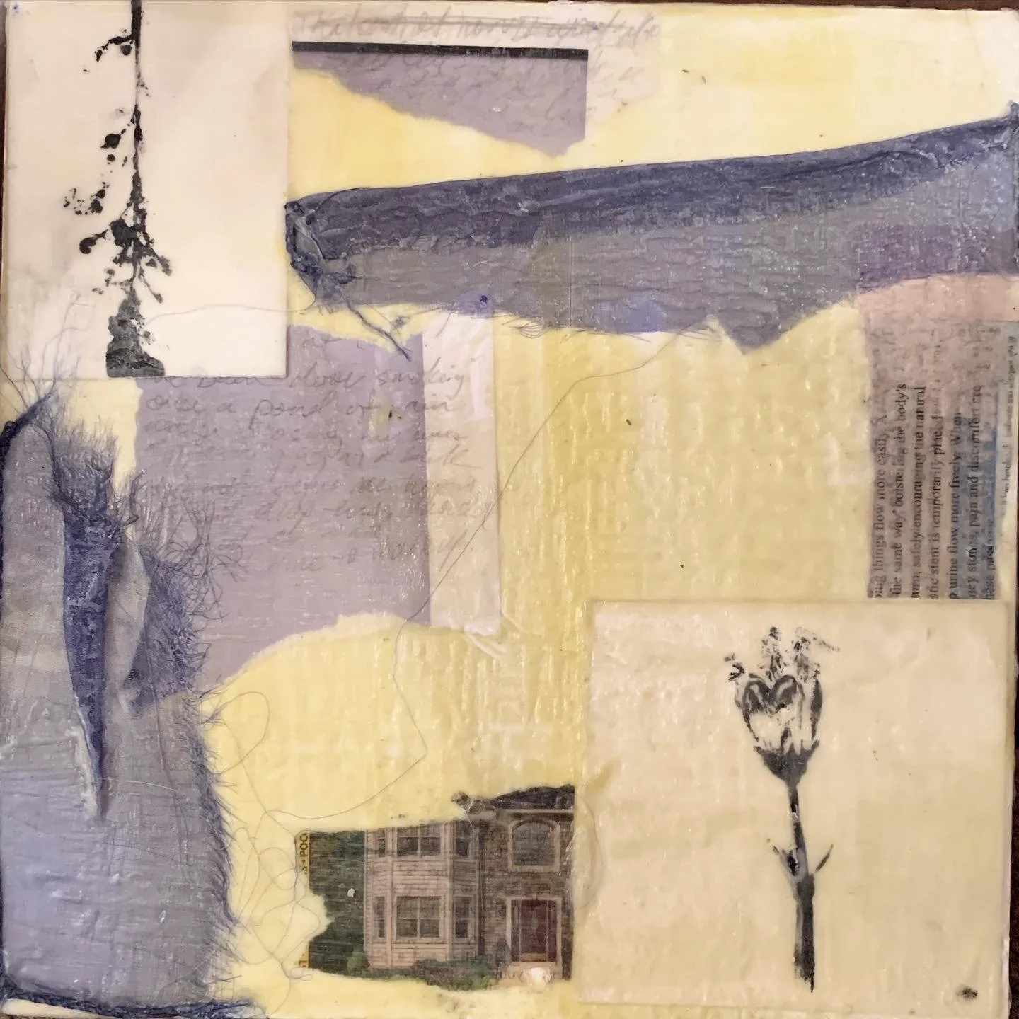 Encaustic and collage. 10in x 10in. 2020.